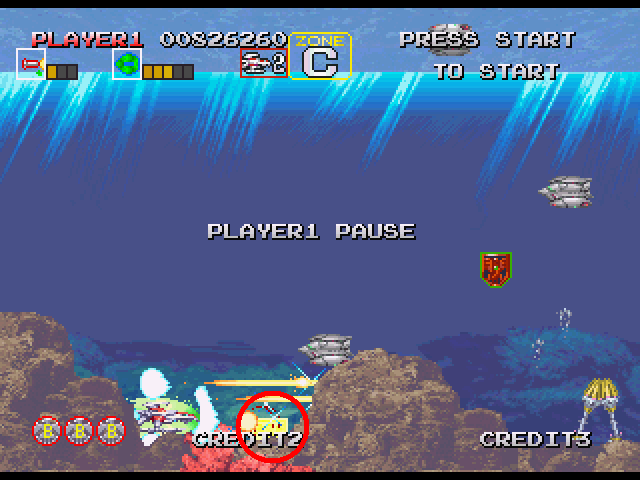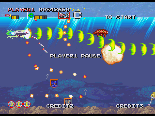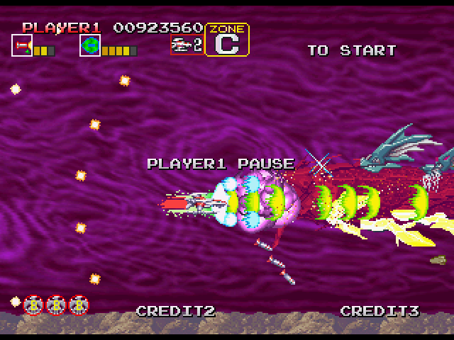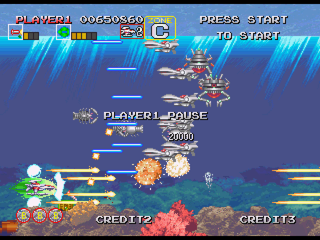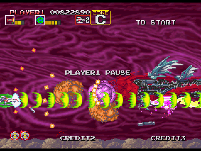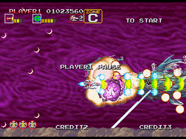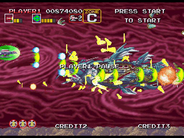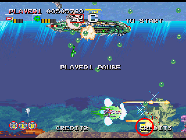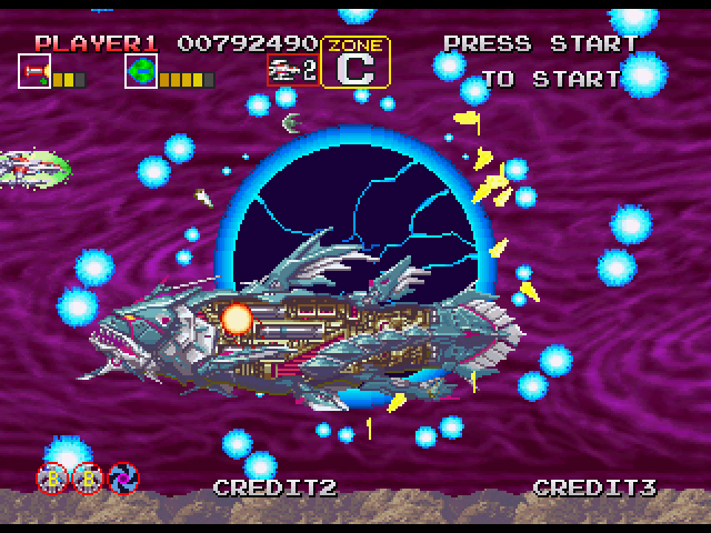 ステージ中盤、5WAY弾をばら撒いたりする敵が出現する辺りの