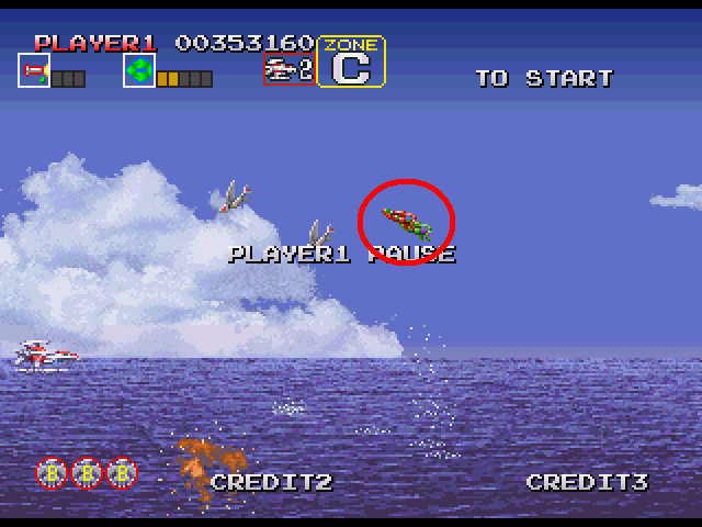 開始直後、水面から飛び出してくる敵の内、最後に赤と緑勲章持ちが出る