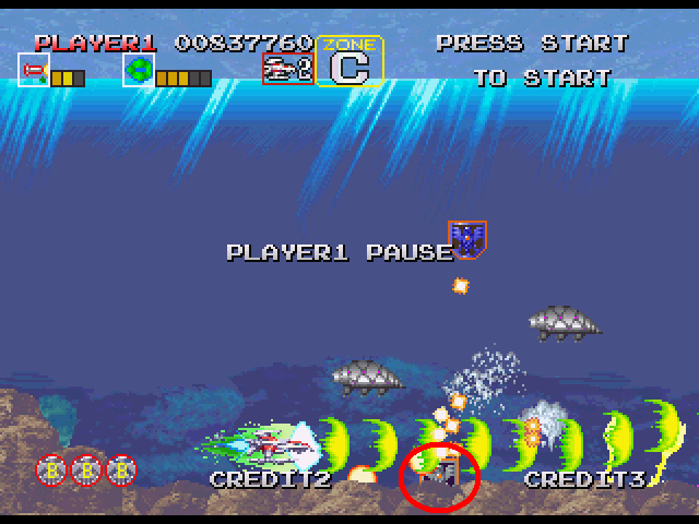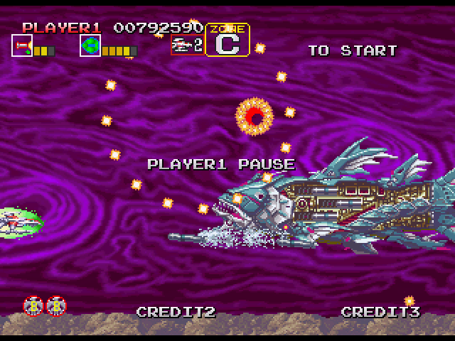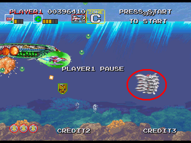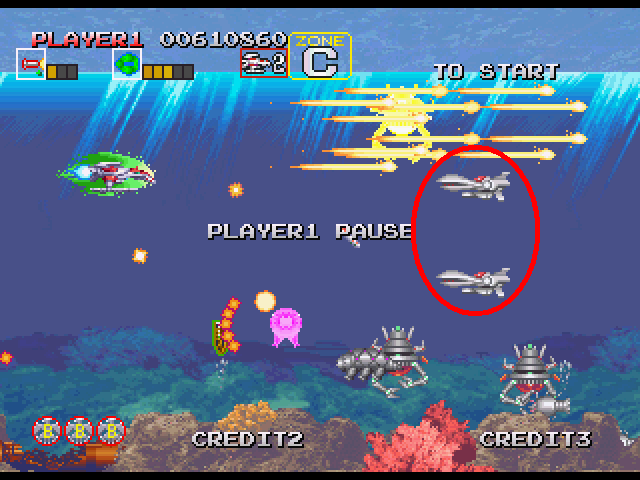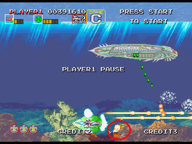 なので、最初の口をあけて扇状の弾を撃って来る際、4発目が撃たれた瞬間