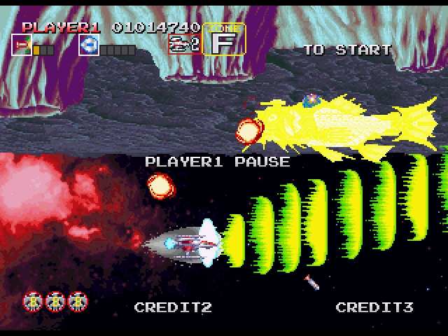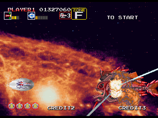 爆発が連続で起こりボスを画面外にまで押し出すことが出来る
