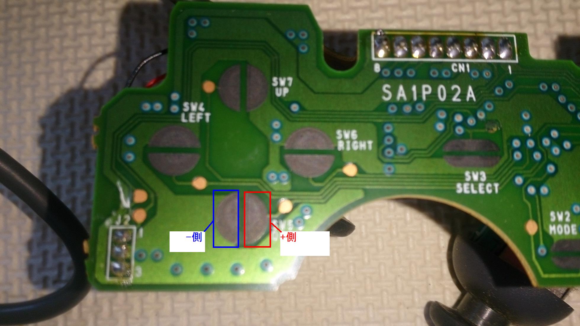 やはり基板に線が出ている側が+側(接点側)のようだ